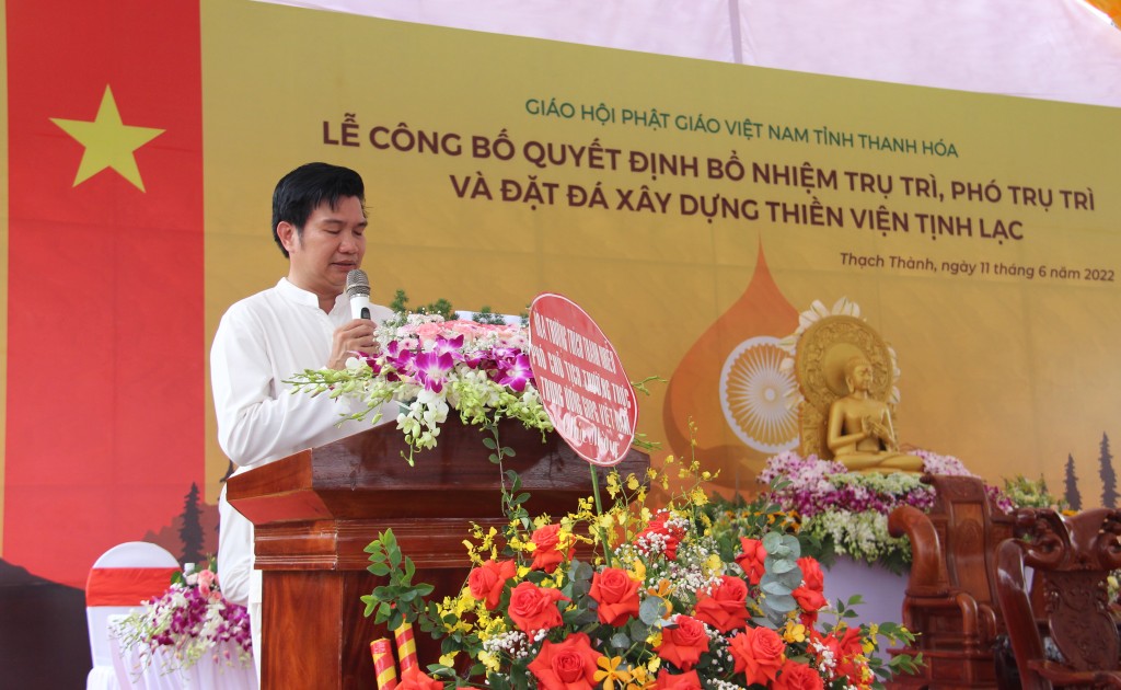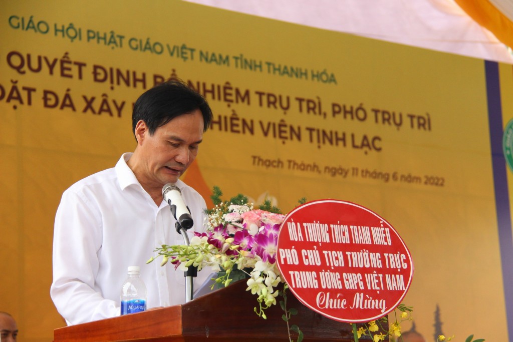 Đại diện lãnh đạo chính quyền, ông Phạm Đình Minh, Chủ tịch UBND huyện Thạch Thành nêu cao vai trò của thiền viện đối với đời sống tâm linh và văn hóa của người dân địa phương, đồng thời ghi nhận các hoạt động từ thiện xã hội của Hòa thượng Thích Bửu Chánh trong thời gian qua trên địa bàn huyện. Ông cũng bày tỏ mong muốn các tổ chức, cá nhân ủng hộ tài lực và vật lực để công trình tâm linh này sớm hoàn thành.