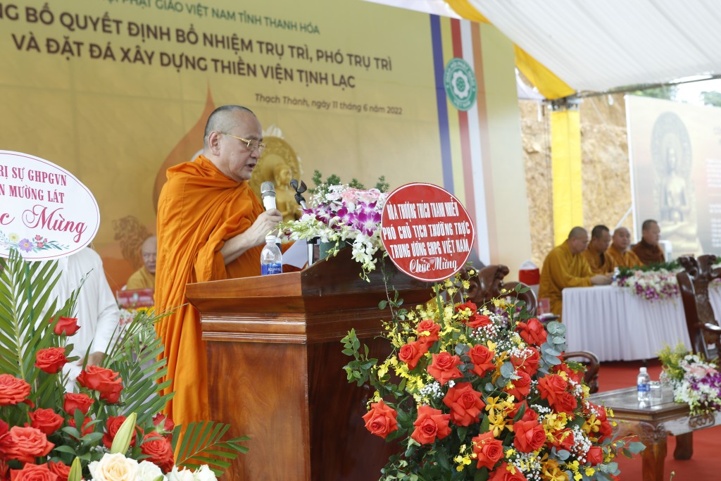 Vào ngày 13 tháng 5 năm Nhâm Dần, tức ngày 11/6/2022, Ban Trị sự Giáo hội Phật giáo tỉnh Thanh Hóa đã tổ chức buổi lễ Công bố quyết đinh bổ nhiệm Trụ trì & Phó trụ trì và Đặt đá xây dựng Thiền viện Tịnh Lạc (thị trấn Vân Du, huyện Thạch Thành, tỉnh Thanh Hóa).