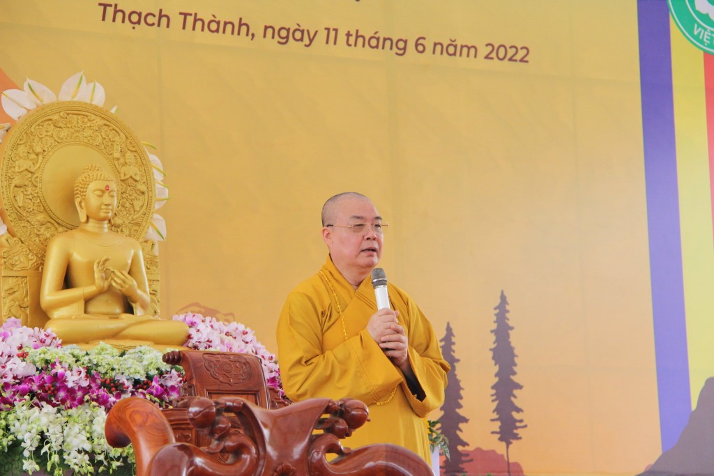Sau nghi thức niệm Phật cầu gia hộ, Hòa thượng Thích Bửu Chánh đã phát biểu khai mạc và trình bày quá trình xây dựng ngôi Thiền viện Tịnh Lạc.