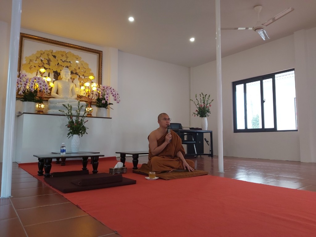- Đặt các thiết bị điện tử dùng để nghe giảng trực tuyến ở vị trí cao hơn và người nghe ngồi thấp hơn thiết bị đó để thể hiện lòng tôn kính Pháp.