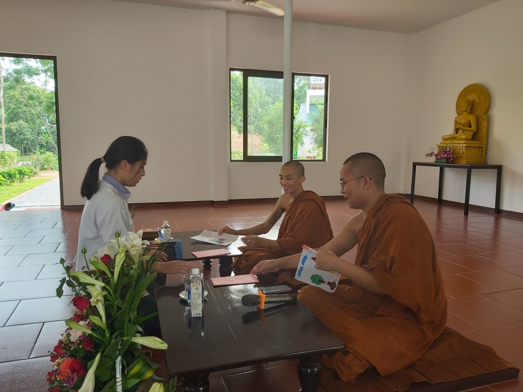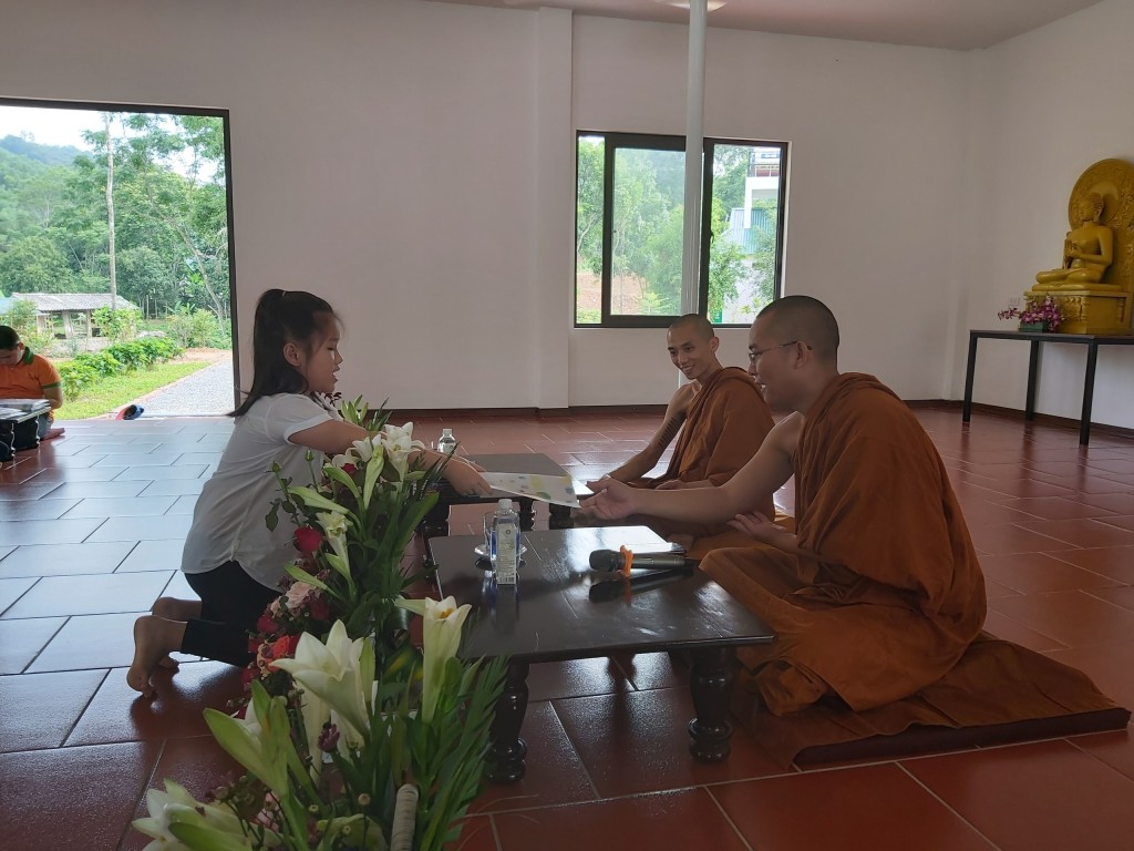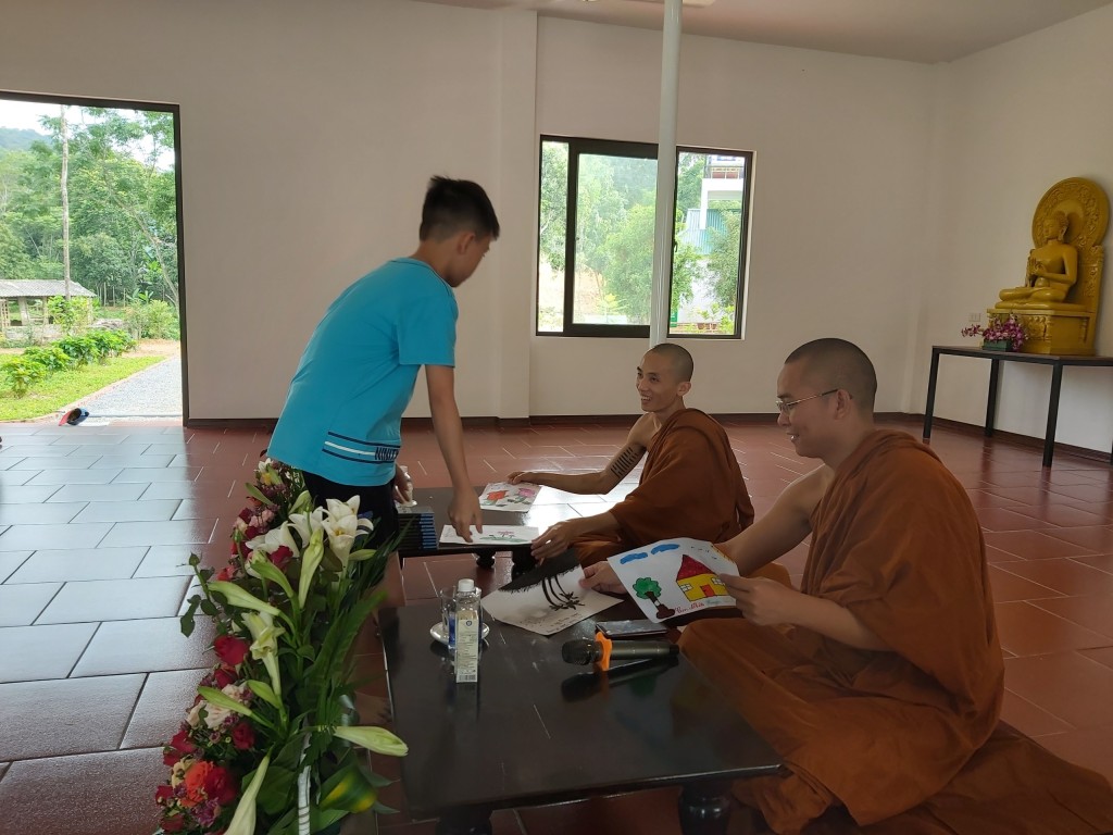 Ngày Quốc tế Thiếu Nhi, các lớp tiếng Anh của Thiền viện Tịnh Lạc rất vinh dự vì có sự tham dự của Sư Trí Tiệp và Sư Tuệ Hỷ.Các em học sinh phấn khởi khi được nhận những món quà ý nghĩa nhân dịp ngày Quốc tế Thiếu nhi.Tất cả các em học sinh đều nhận được sự quan tâm và thăm hỏi ân cần của Sư Trí Tiệp, Sư Tuệ Hỷ.Một năm học đầy ắp kỷ niệm online vừa qua cũng là kỳ nghỉ hè thú vị vừa đến vì có em lần đầu tiên được đến Thiền viện Tịnh Lạc.Chị Bùi Thị Tốt – đại diện cho các phụ huynh bày tỏ lòng tri ân đến Sư với sự tâm huyết gieo mầm xanh cho việc học tiếng Anh của các em học sinh.Các em học sinh dâng những bông hoa đẹp nhất thể hiện tấm lòng thành kính đến Tam Bảo.Học sinh Lê Tùng Lâm với lời tâm sự: “I would like to thank you for the love you give us, the Principle!”Học sinh Chi Lê tri ân thầy Hiệu trưởng Trí Tiệp thể hiện qua bức tranh em vẽ.Học sinh nhỏ tuổi Nhật Huyền sáng tạo những bức tranh sinh động để gửi đến Sư Trí Tiệp, Sư Tuệ HỷHọc sinh Viết Hưng với những bức tranh kèm bài thơ do em sáng tác để nói lời cảm ơn đến Sư Trí Tiệp, Sư Tuệ Hỷ.Học sinh An Nguyên với những lời cảm ơn được viết nắn nót trong tấm bưu thiếp để gửi đến người thầy giáo đáng kính.Tủ sách “Hạt giống tâm hồn” của Thiền viện Tịnh Lạc được khai trương đúng ngày Quốc tế Thiếu nhi 1/6/2022.Ngày Quốc tế Thiếu nhi đầy ý nghĩa cao đẹp của thầy và trò Thiền viện Tịnh Lạc.